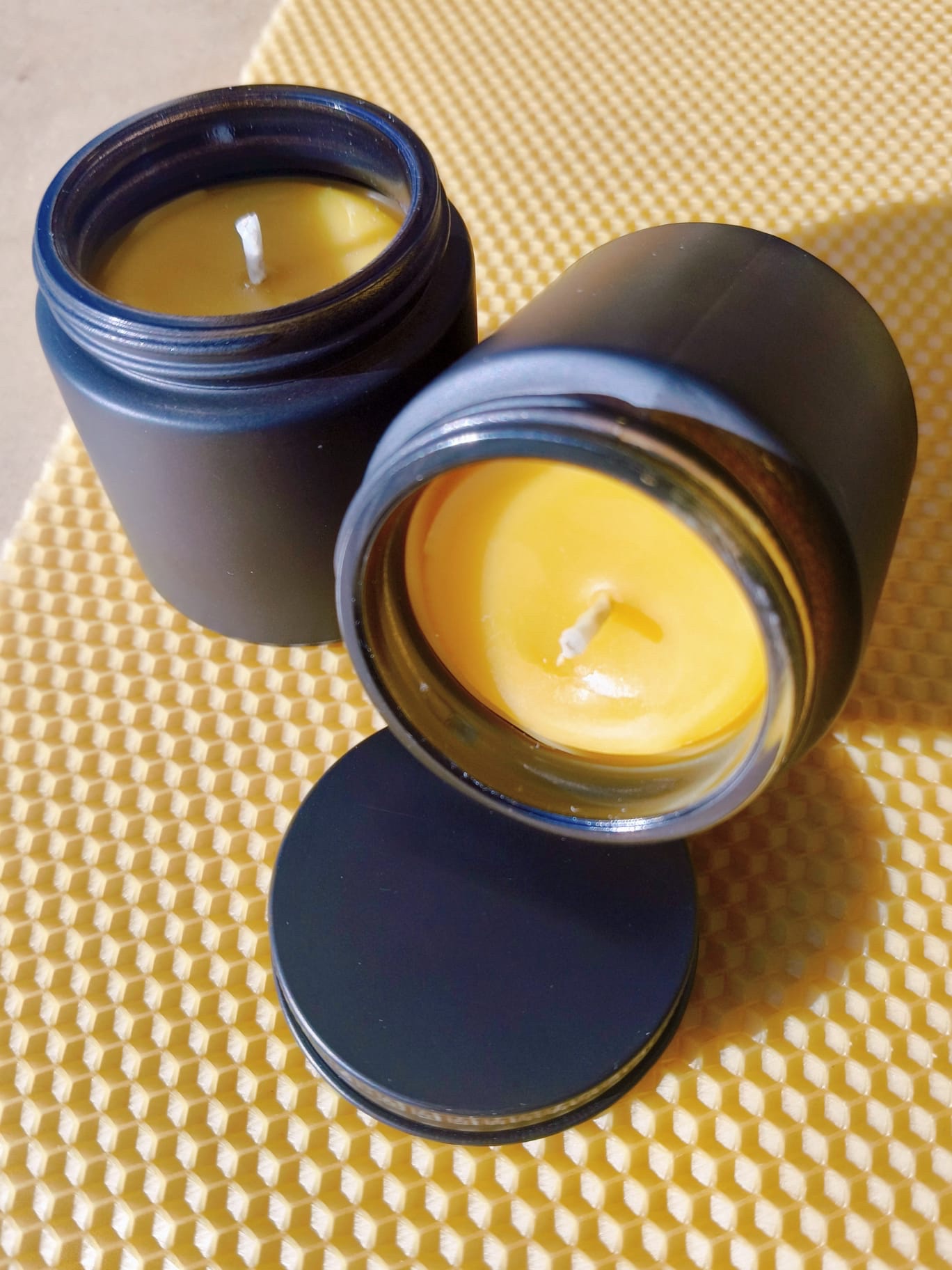 Świeca w słoiczku 120ml wykonana w 100% z wosku pszczelego.